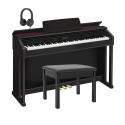 The Casio AP-270 Celviano is an 88-key digital piano designed for realistic acoustic piano feel and sound, featuring a Tri-Sensor Scaled Hammer Action Keyboard with simulated ebony/ivory keys, AiR sound source for rich tones, 22 instrument voices, 192-note polyphony, and a built-in recording function. It's ideal for beginners to intermediate players, offering features like Duet Mode for lessons, a Concert Play mode with orchestral recordings, and USB connectivity for apps, all housed in a stylish cabinet with a sliding key cover and matching bench.